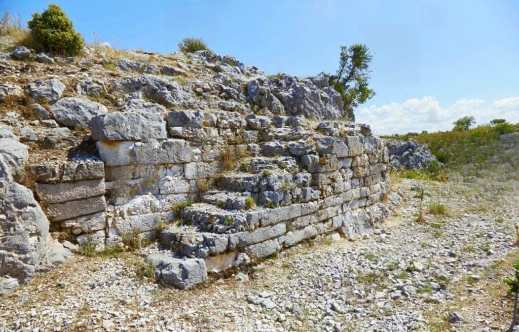 Die Stätte ist in 249 Meter Höhe gelegen. Die Mauern werden auch Zyklopenmauern genannt. Alleine die Verteidigungsmauer war 65 Meter lang, 4,2 Meter breit und bis 7,5 Meter hoch. Auf beiden Seiten der Mauer standen einst Türme.